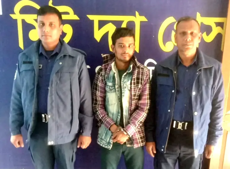 গ্রেফতারকৃত আসামী পৌর শহরের উত্তর বাসুদেবপুর (মুন্সিপাড়া) মৃত আয়নাল হক এর ছেলে।
