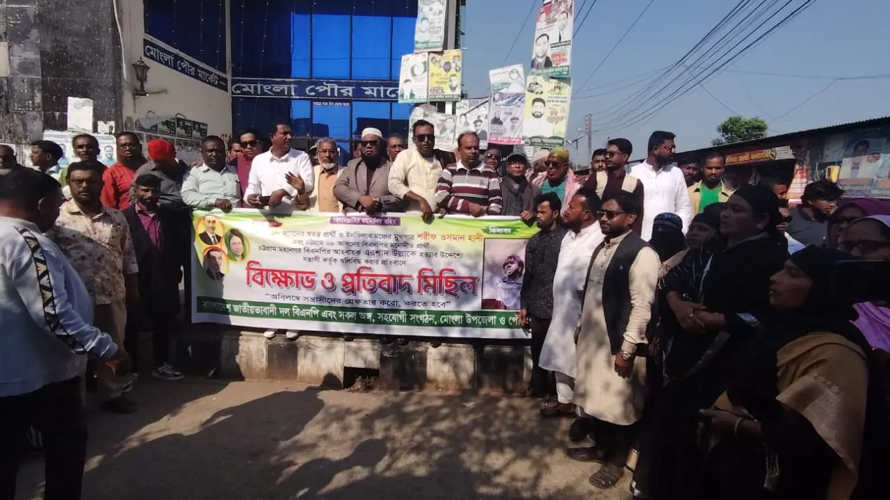 ঢাকা–০৮ আসনের স্বতন্ত্র প্রার্থী ও ইনকিলাব মঞ্চের মুখপাত্র শরীফ ওসমান হাদী এবং চট্টগ্রাম–০৮ আসনের বিএনপির মনোনীত প্রার্থী, চট্টগ্রাম মহানগর বিএনপির আহ্বায়ক এরশাদ উল্লাকে হত্যার উদ্দেশ্যে গুলিবিদ্ধ করার ঘটনায় মোংলায় বিক্ষোভ সমাবেশ করেছে বিএনপি।