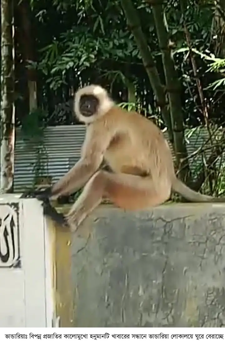ভাণ্ডারিয়ার লোকালয়ে বিপন্ন প্রাণি কালোমুখো হনুমান, জনমনে কৌতূহল ও উদ্বেগ