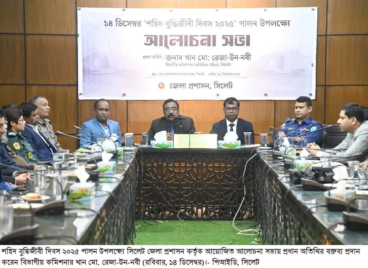 বিভাগীয় কমিশনার বলেন, ১৯৭১ সালে মহান মুক্তিযুদ্ধে বিজয়ের আগমুহূর্তে ১৪ ডিসেম্বর বাঙালি জাতিকে সকল দিক দিয়ে মেধাশূন্য করে দিতে পাকিস্তানি হানাদার বাহিনী ও তাদের এদেশীয় দোসররা পরিকল্পিতভাবে বুদ্ধিজীবীদের উপর নির্মম হত্যাযজ্ঞ চালায় । এরই প্রেক্ষিতে ১৪ ডিসেম্বর এদেশ হারিয়েছিল তাঁর সূর্য সন্তানদের। তিনি বলেন, অন্যায়ের কোন রং নেই। প্রত্যেক কষ্ট, নিপীড়ন, অবিচার এবং বৈষম্যের রং এক। অদম্য এ জাতিকে কোনভাবে দমিয়ে রাখা যাবে না৷ যতবার এ জাতি বৈষম্য, শোষণ, অত্যাচার ও নিপীড়নের শিকার হয়েছে ততবারই সে প্রতিবাদী কণ্ঠে ঘুরে দাড়িয়েছে।