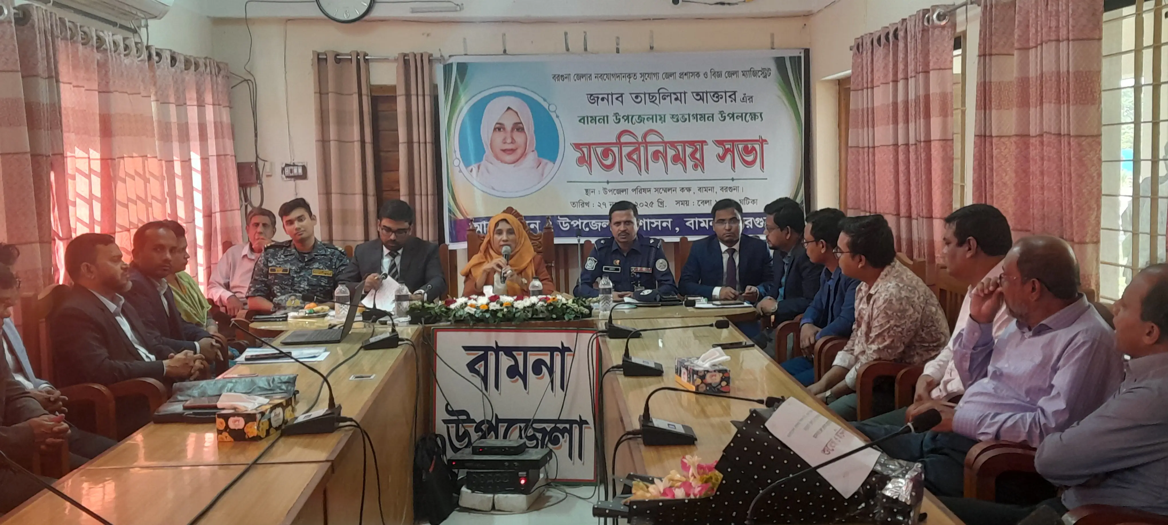 নবাগত জেলা প্রশাসক ও জেলা নির্বাহী ম্যাজিস্ট্রেট তাসলিমা আক্তারএর বামনায় শুভাগমন উপলক্ষে উপজেলা প্রশানের সাথে মতবিনিময় সভা