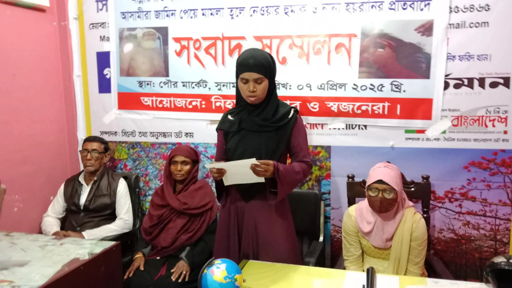 সংবাদ সম্মেলনে লিখিত বক্তব্য পাঠ করেন নিহত মকবুল আলীর স্ত্রী মোছা. রহমতুন নেছা।