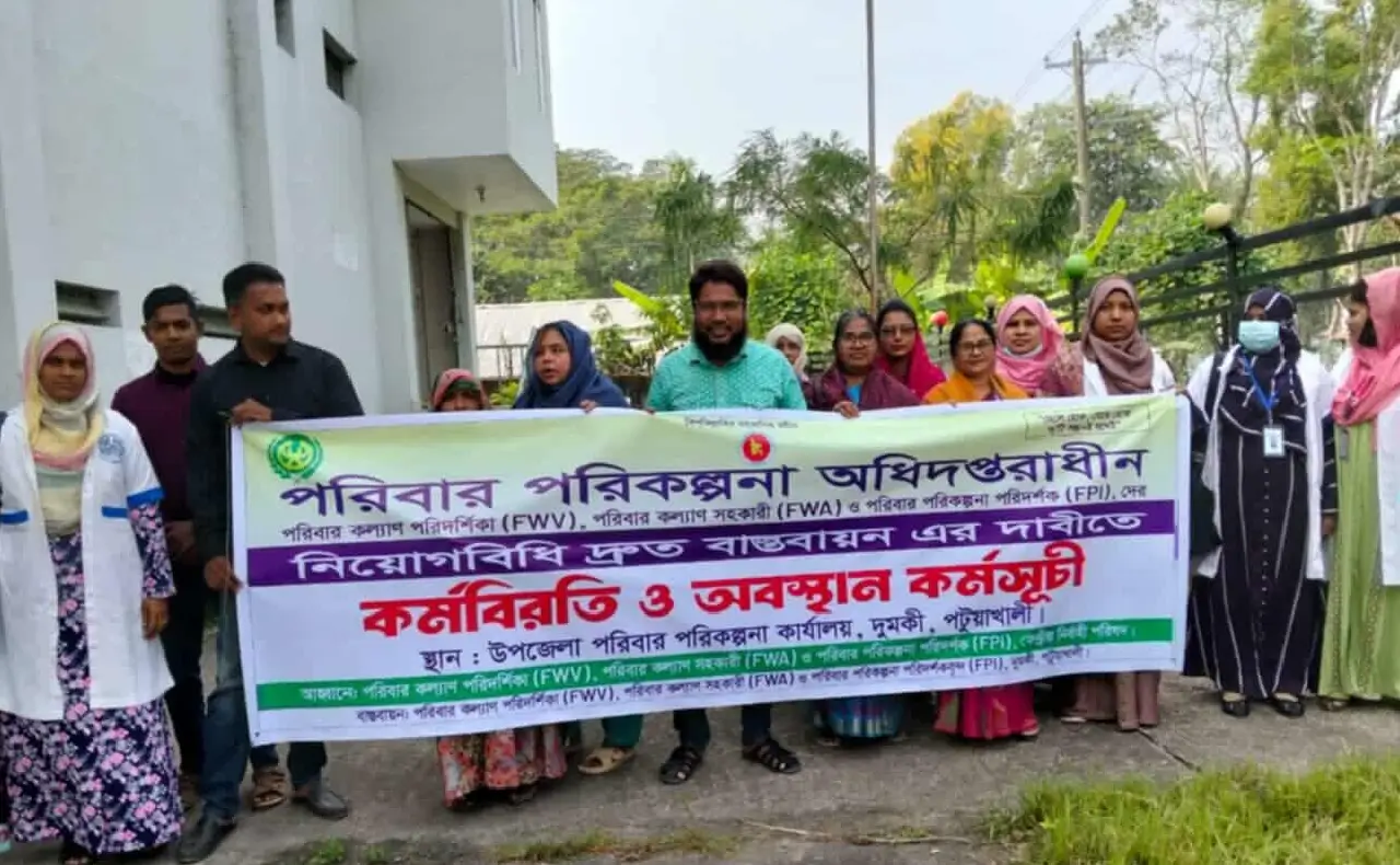 দুমকিতে পরিবার পরিকল্পনা কর্মীদের অবস্থান ধর্মঘট
