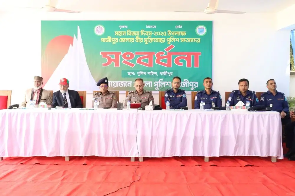 গাজীপুর জেলা পুলিশের উদ্যোগে জেলায় অবসরপ্রাপ্ত পুলিশ বীর মুক্তিযোদ্ধাদের স্মরণে সংবর্ধনা অনুষ্ঠান অনুষ্ঠিত হয়।