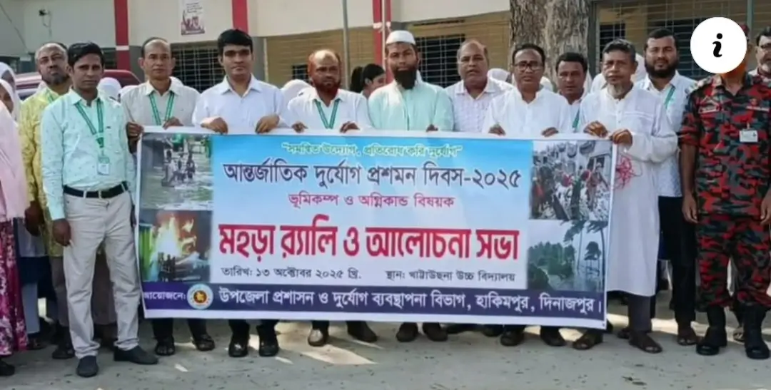 সমন্বিত উদ্যোগ, প্রতিরোধ করি দূর্যোগ, এই প্রতিপাদ্যকে সামনে রেখে দিনাজপুরের হাকিমপুরে আন্তর্জাতিক দূর্যোগ প্রশমন দিবস পালন হয়েছে।