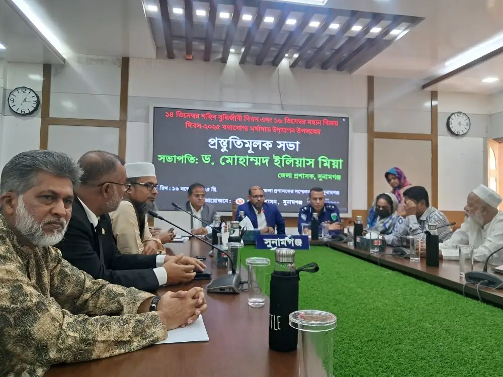 ৬ ডিসেম্বর সুনামগঞ্জ মুক্ত দিবস,১৪ ডিসেম্বর শহীদ বুদ্ধিজীবি দিবস ও ১৬ ডিসেম্বর মহান বিজয় দিবস ২০২৫ যথাযোগ্য মর্যাদার সাথে উদযাপন উপলক্ষে সুনামগঞ্জ জেলা প্রশাসনের আয়োজনে প্রস্তুতিমূলক সভা অনুষ্ঠিত হয়েছে।