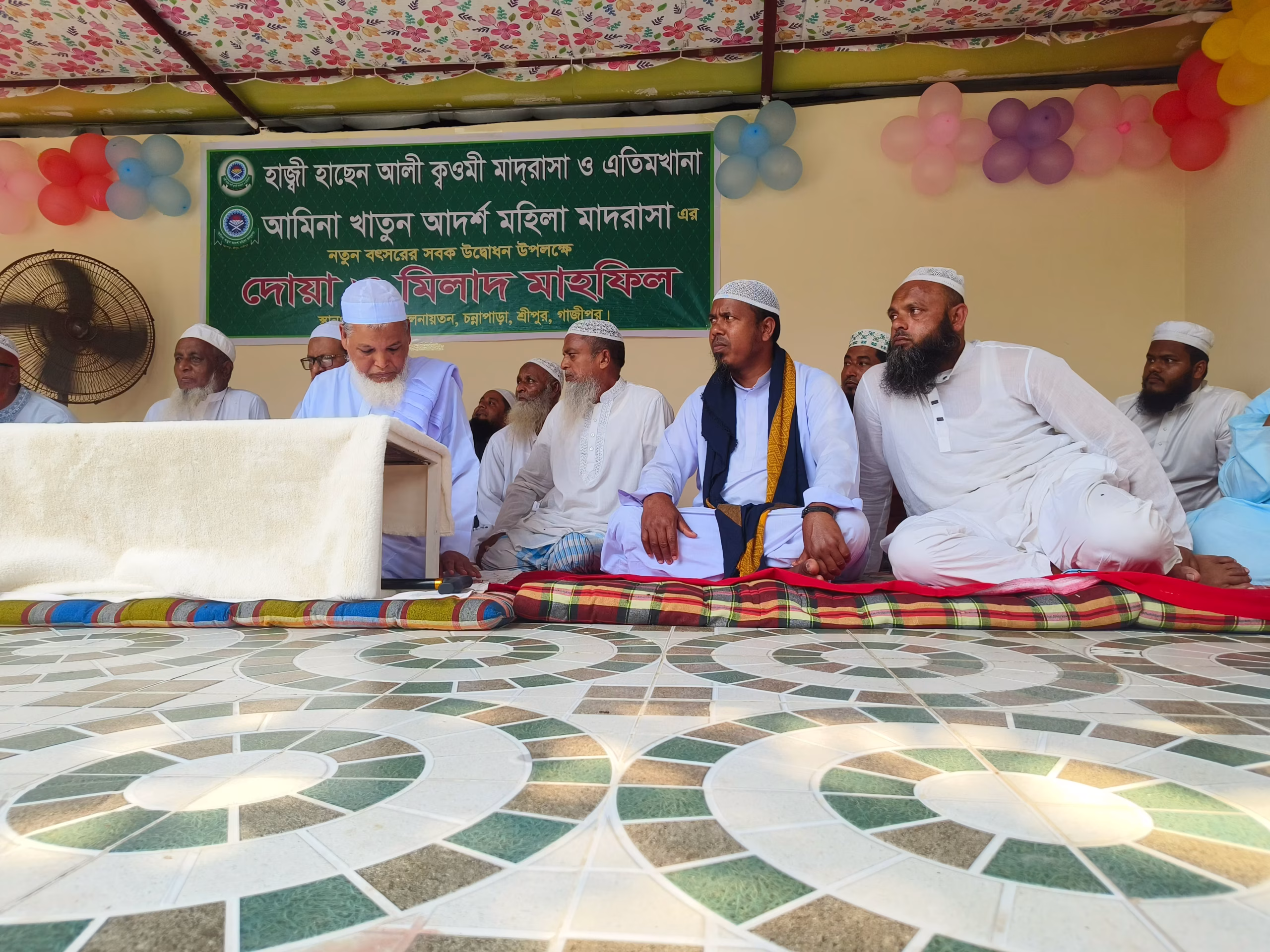 গাজীপুরের শ্রীপুরে হাজ্বী হাছেন আলী কওমি মাদ্রাসা এবং আমেনা খাতুন আদর্শ মহিলা মাদ্রাসায় শিক্ষার্থীকে কোরআনের সবক প্রদান উপলক্ষে দোয়া মাহফিল অনুষ্ঠিত হয়েছে।