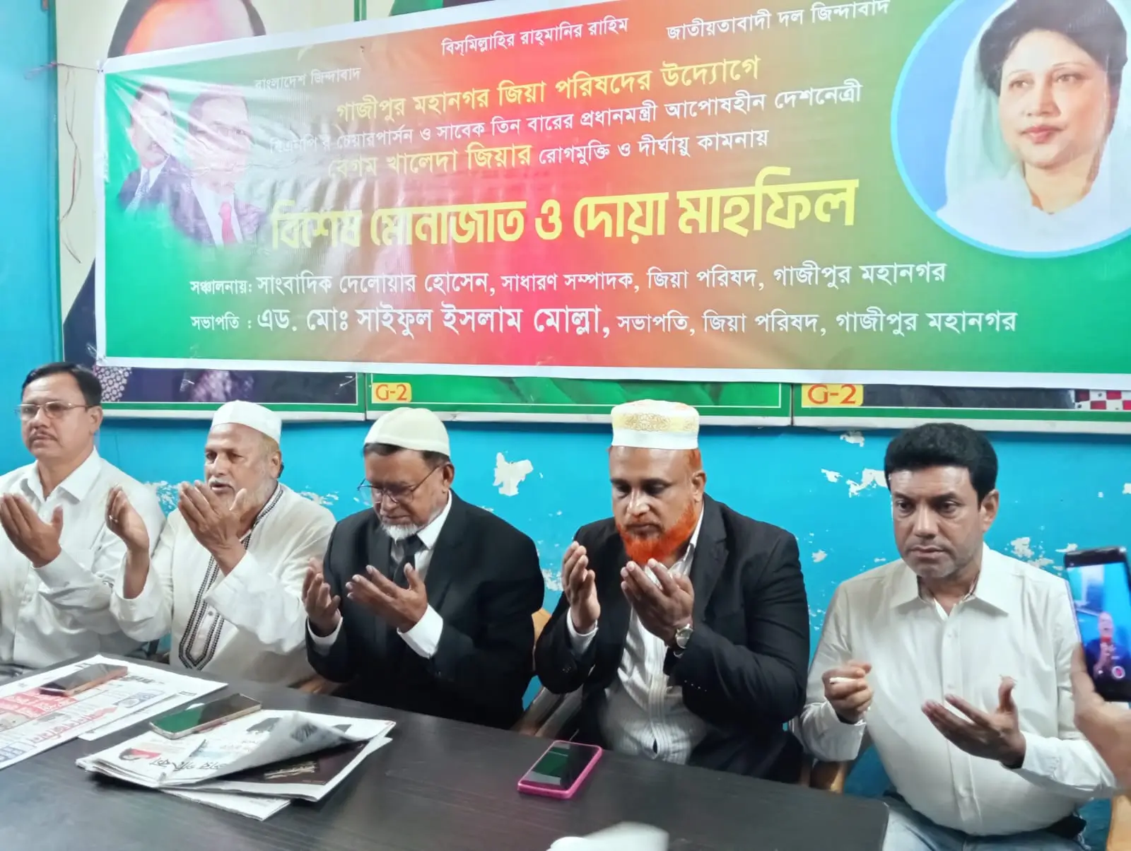 গাজীপুরে জিয়া পরিষদের উদ্যোগে বেগম জিয়ার সুস্থতা কামনায় দোয়া