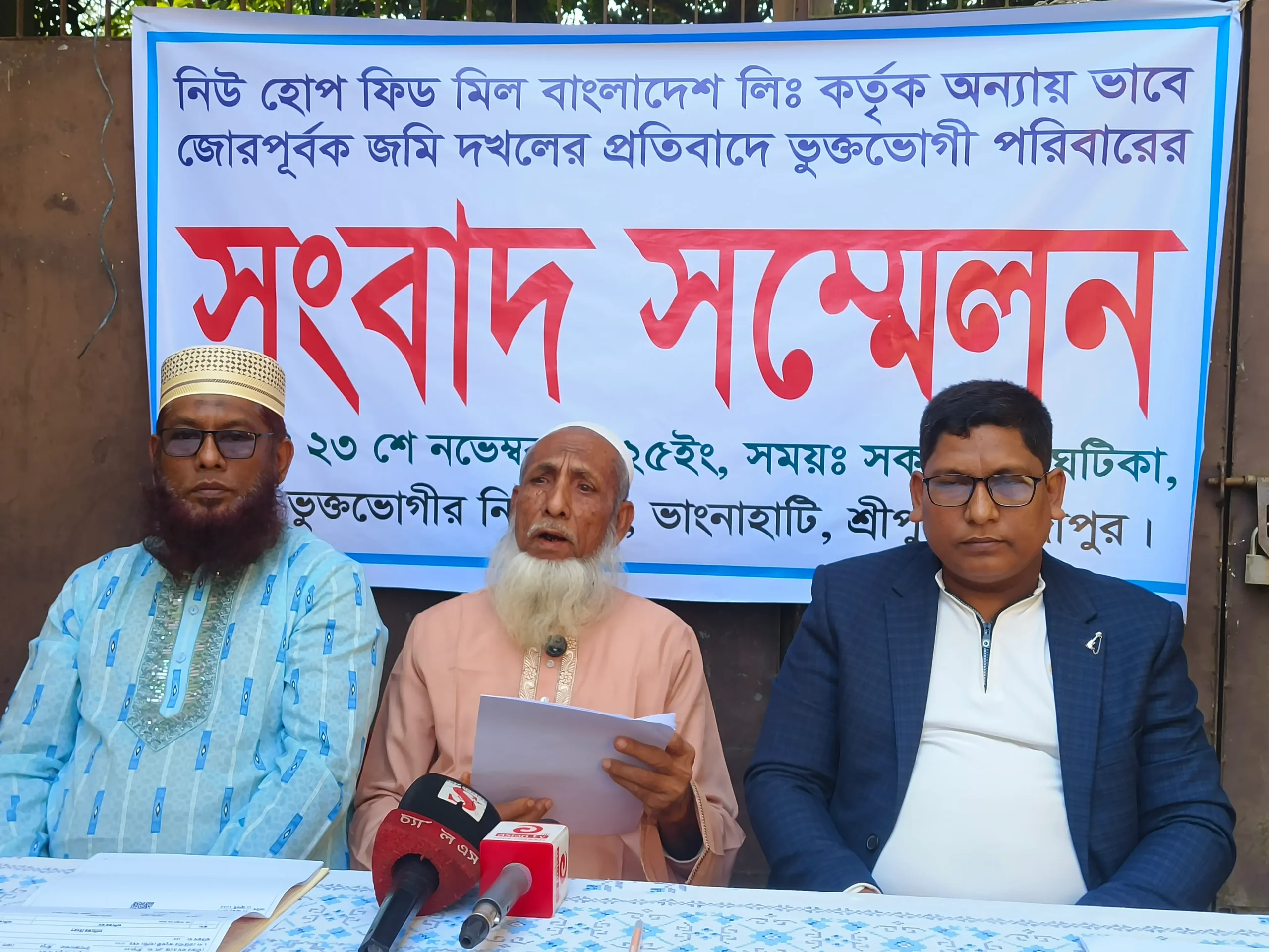 শ্রীপুরে কারখানা কর্তৃপক্ষ জোরপূর্বক জমি দখলে রাখার অভিযোগে ভুক্তভোগী পরিবারের সংবাদ সম্মেলন