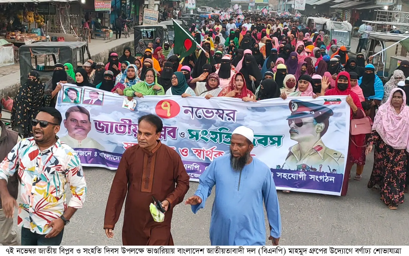 ৭ই নভেম্বর জাতীয় বিপ্লব ও সংহতি দিবস-২০২৫ উপলক্ষে পিরোজপুরের ভাণ্ডারিয়ায় বাংলাদেশ জাতীয়তাবাদী দল (বিএনপি) মাহমুদ গ্রুপের উদ্যোগে বর্ণাঢ্য শোভাযাত্রা ও আলোচনা সভার আয়োজন করা হয়।