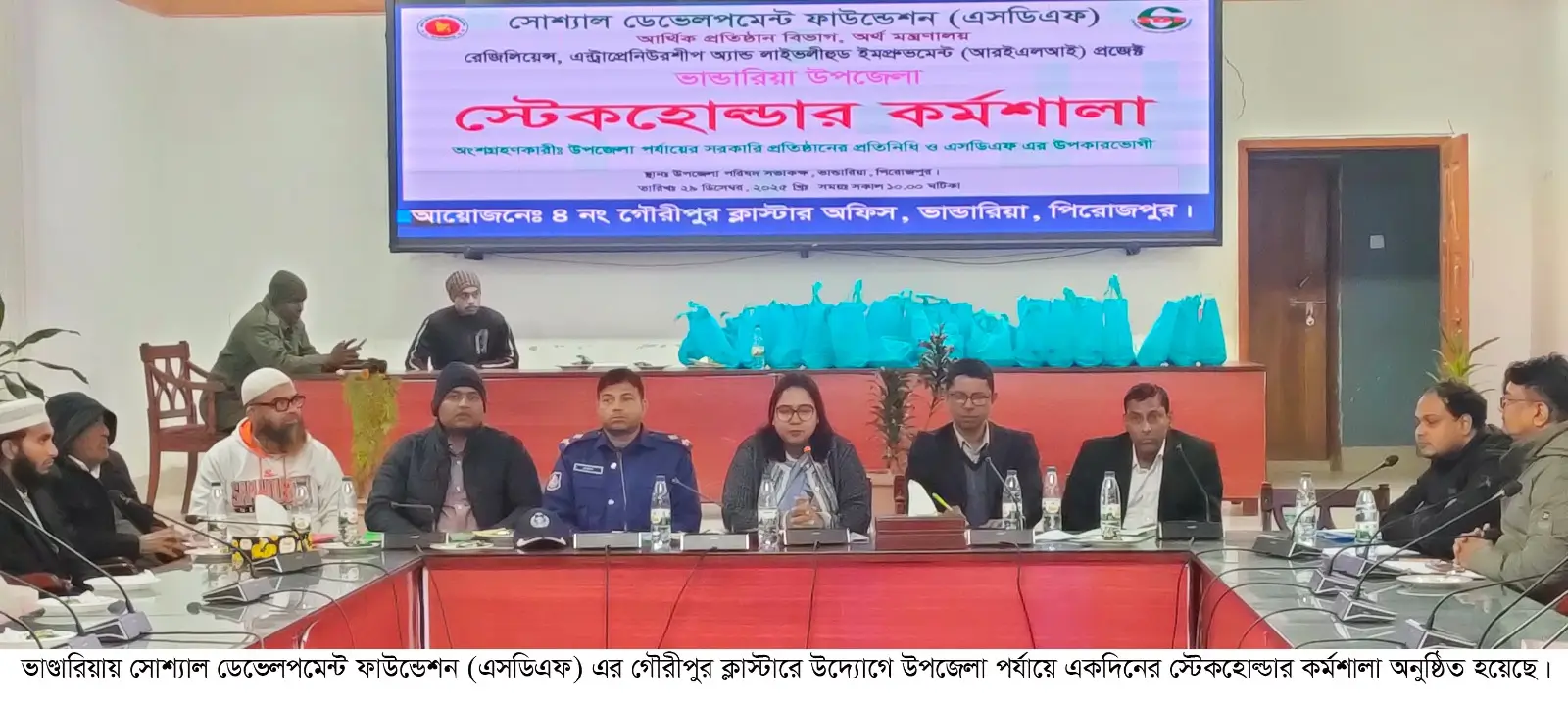 পিরোজপুরের ভাণ্ডারিয়ায় সোশ্যাল ডেভেলপমেন্ট ফাউন্ডেশন (এসডিএফ) এর গৌরীপুর ক্লাস্টারে উদ্যোগে উপজেলা পর্যায়ে একদিনের স্টেকহোল্ডার কর্মশালা অনুষ্ঠিত হয়েছে।