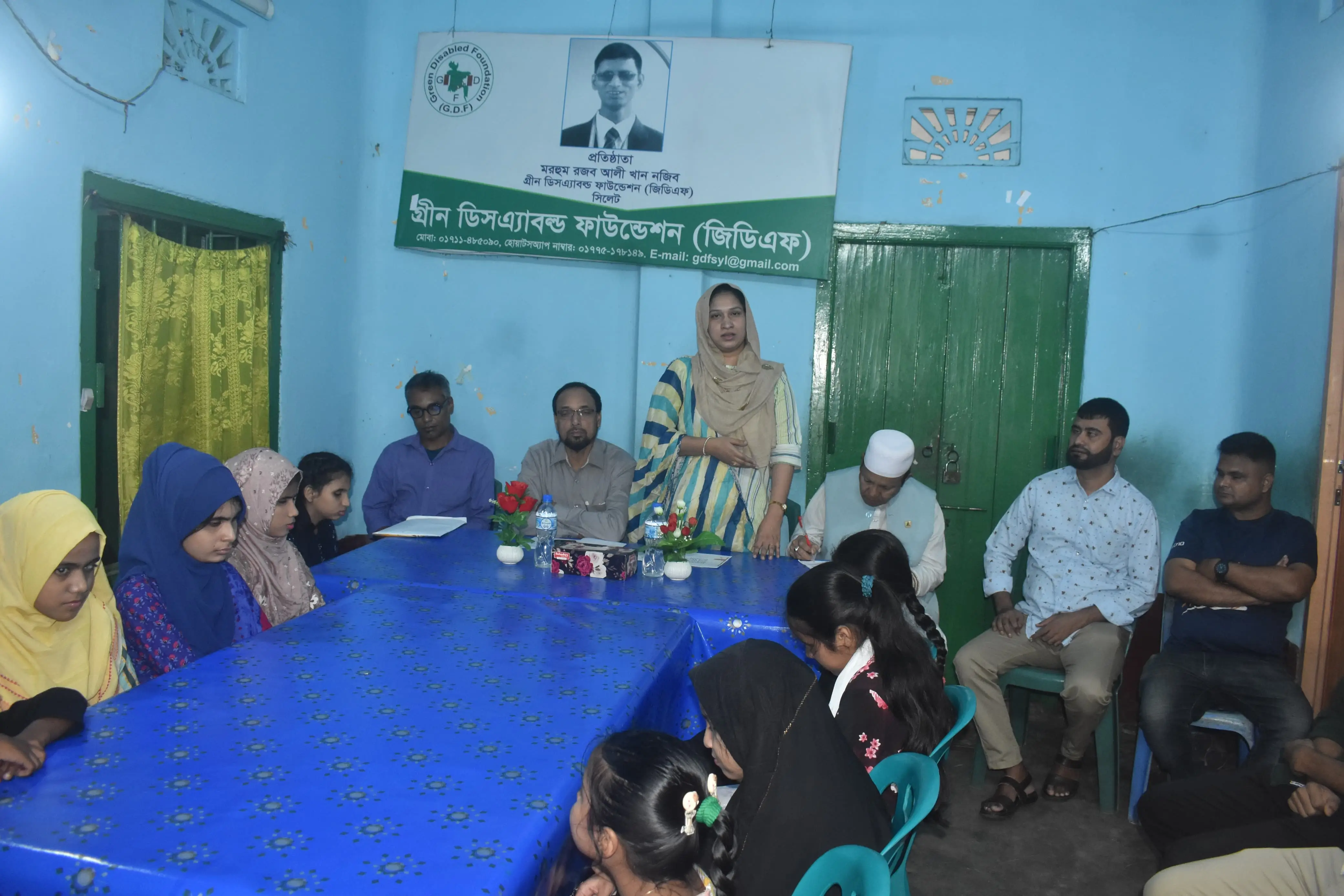 অনুষ্ঠানে স্বাগত বক্তব্য রাখেন গ্রীন ডিজএ্যাবলড ফাউন্ডেশন-জিডিএফ’র মহাসচিব ও নির্বাহী পরিচালক বায়জিদ খান। অনুষ্ঠানে শুভেচ্ছা বক্তব্য রাখেন হিসাব রক্ষক মোঃ শাহজাহান, শিক্ষার্থী তাহমিনা আক্তার মৌমী।