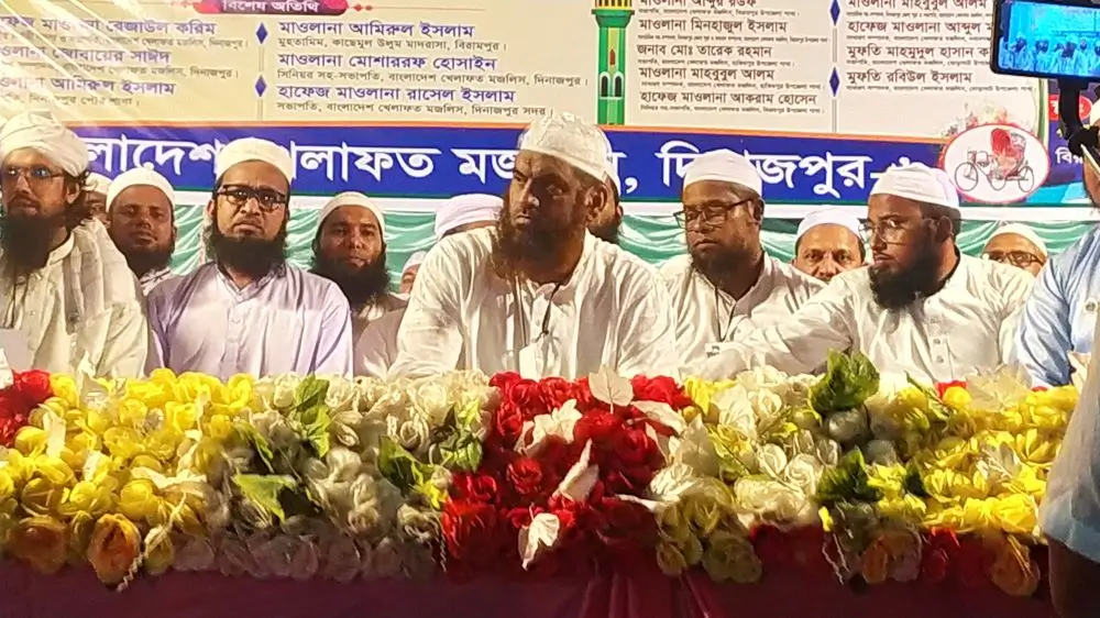 শনিবার (১১ অক্টোবর) সন্ধ্যায় দিনাজপুরের বিরামপুর উপজেলার পাইলট স্কুল মাঠে দিনাজপুর-৬ আসনের খেলাফত মজলিসের প্রার্থী মুফতি নূরুল করিমের সভাপতিত্বে গণ সমাবেশে প্রধান অতিথির বক্তব্যে এসব মন্তব্য করেন তিনি।