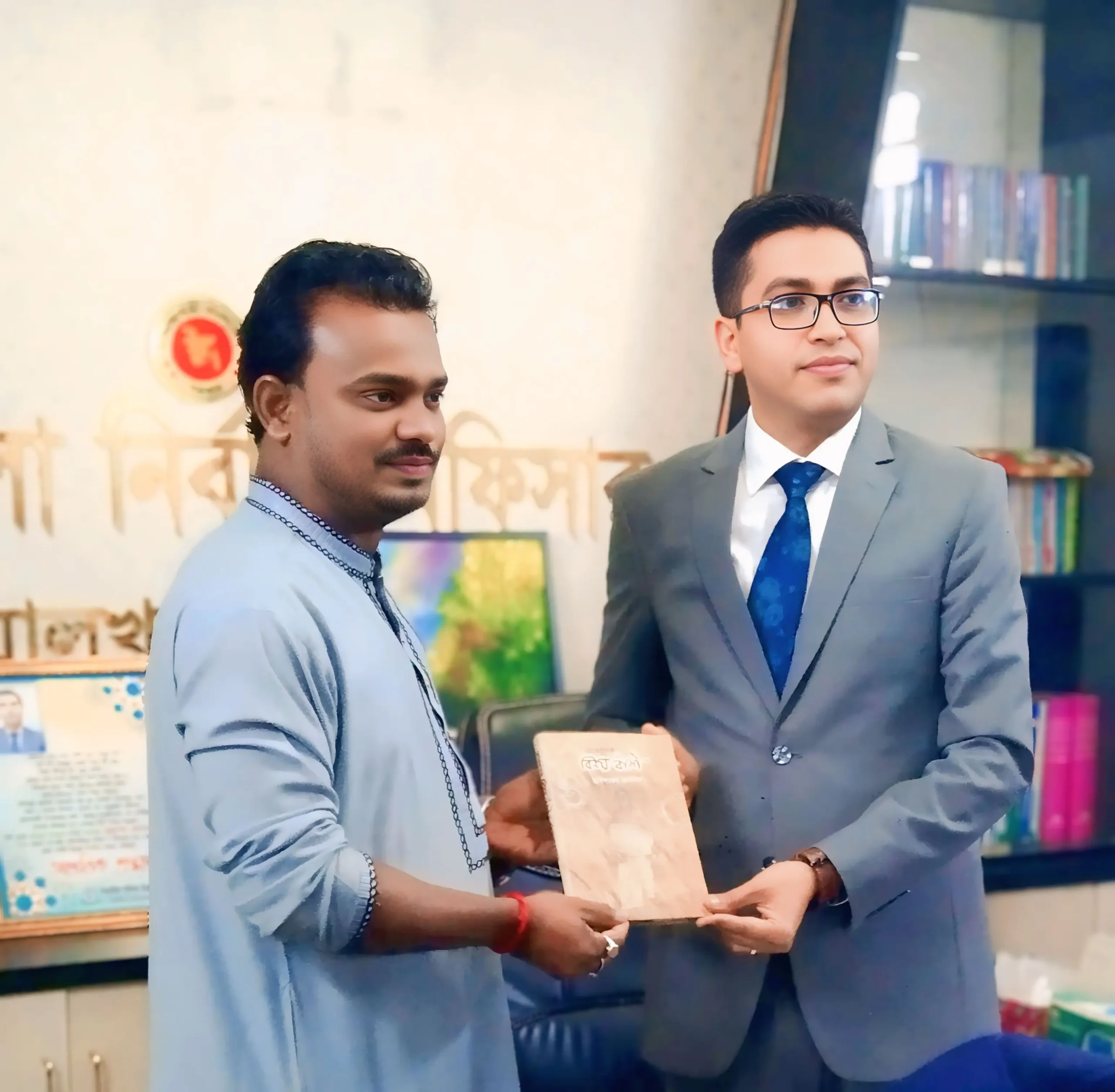 বোয়ালখালীর ইউএনও মোঃ রহমত উল্লাহকে বিনয়বাঁশী শিল্পীগোষ্ঠী কর্তৃক “লোকবাদক বিনয়বাঁশী” গ্রন্থটি উপহার
