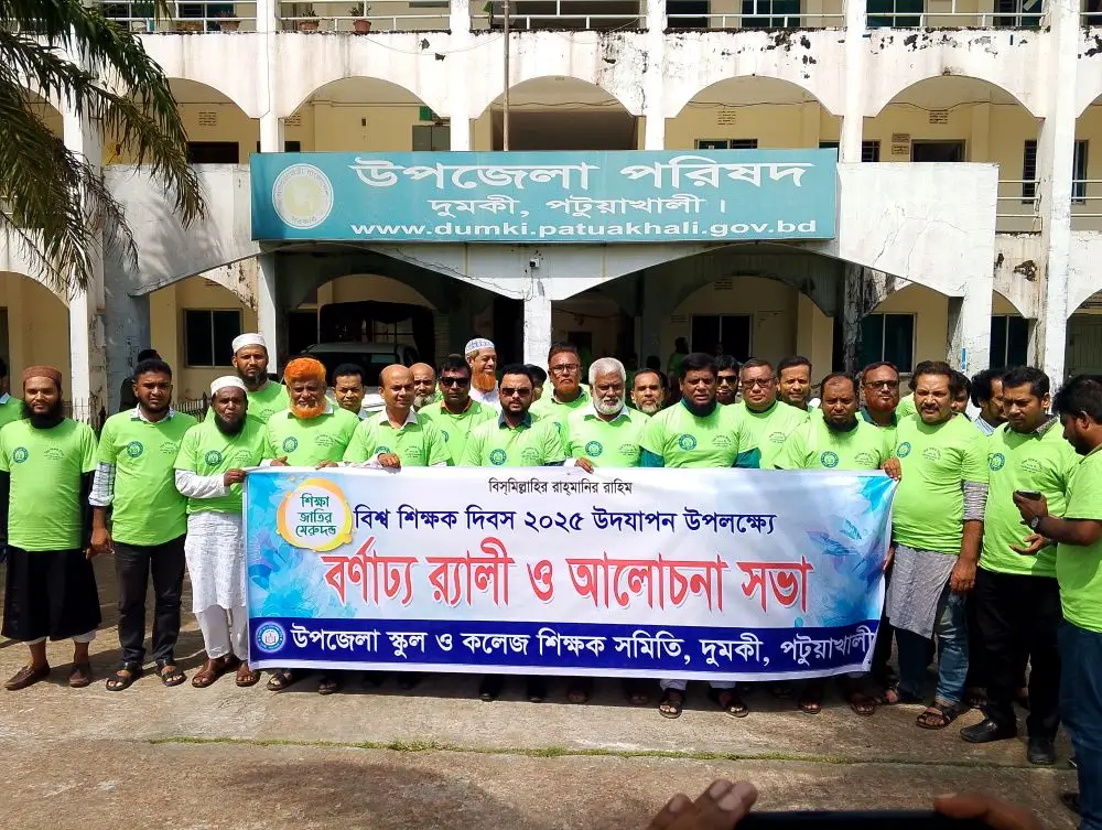 পটুয়াখালীর দুমকিতে উপজেলা স্কুল ও কলেজ শিক্ষক সমিতির আয়োজনে “বিশ্ব শিক্ষক দিবস উপলক্ষে এক বর্ণাঢ্য র্যালি ও আলোচনা সভা অনুষ্ঠিত হয়েছে।